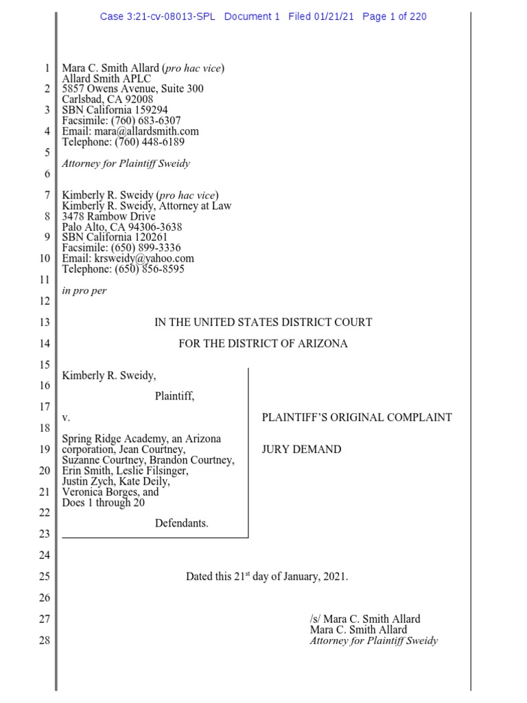 321-cv-08013 in the Arizona District Court. She discriminated against the LGBTQ community and didnt have an open state of mind. In a recently filed and still-open lawsuit against Spring Ridge Academy by the mother of a former student Courtney is named both in reference to her alleged connection to.